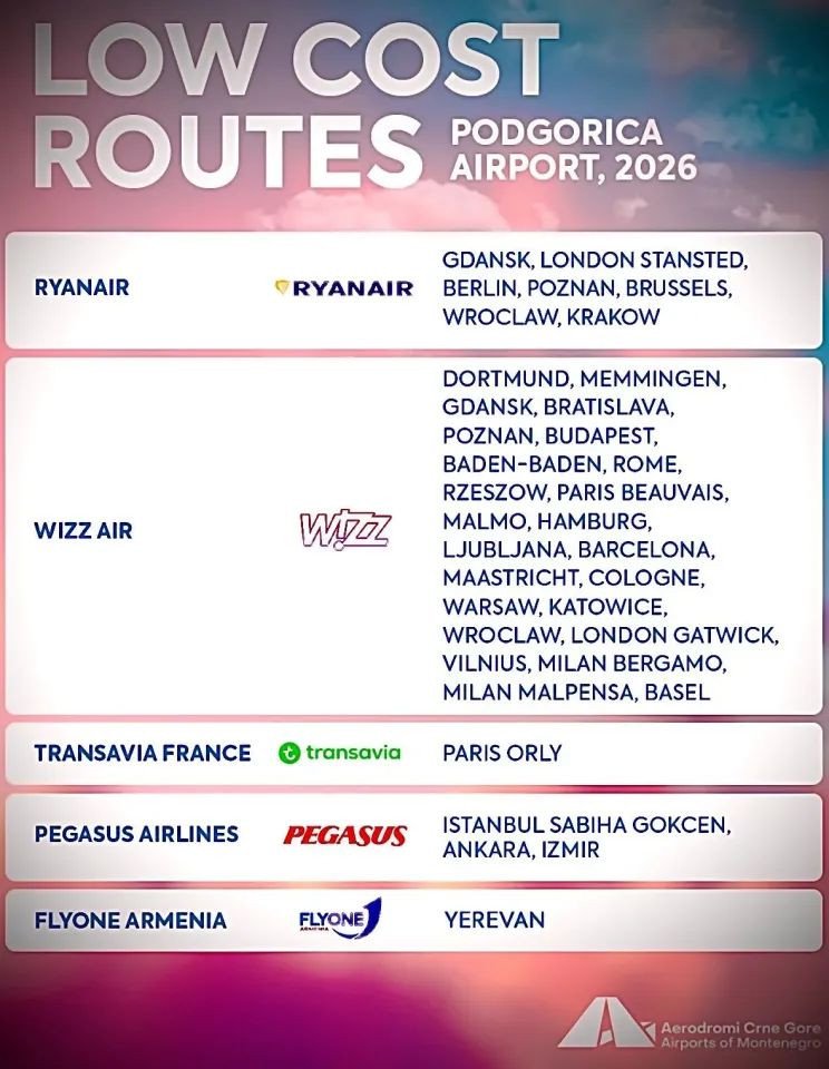- Podgorica Airport – a year-round, functional airport focused on affordability and work-related travel