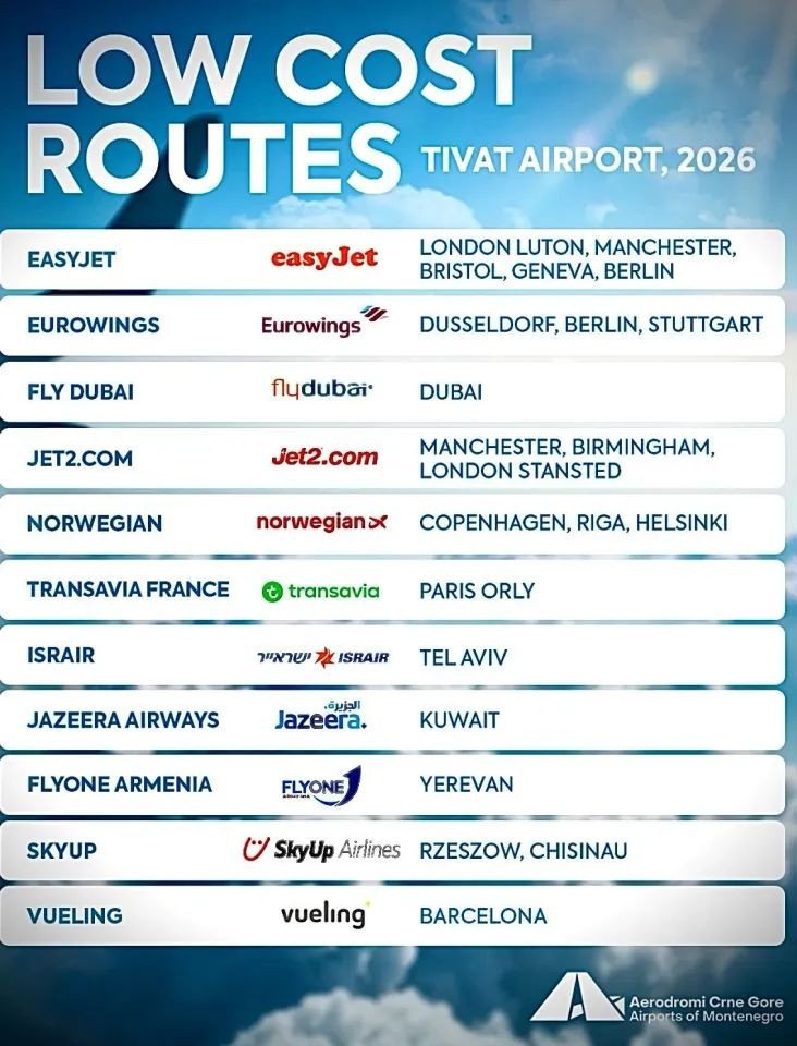 In 2026, Montenegro enters the year with its most developed low-cost flight network to date, making the country more accessible than ever for short-term visitors, long-stay tourists, and digital nomads looking for a flexible and affordable European base.